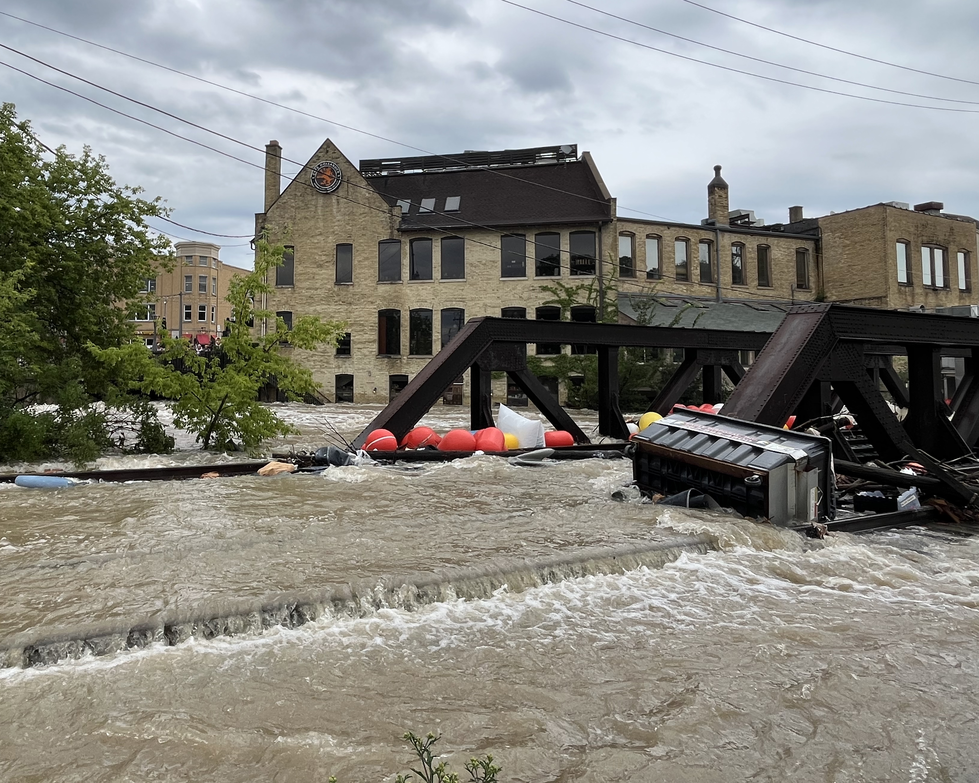 Across the river, the iconic Little Red Store, a city historic site managed by the Wauwatosa Historical Society, was left with a basement filled with water after the river rose by 13 feet overnight. Cleanup started almost immediately after the river subsided, and the Historical Society hopes to have the Little Red Store open again for rentals by next month.